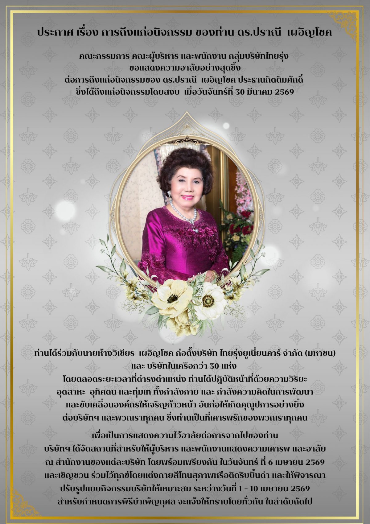 กลุ่มบริษัทไทยรุ่ง ขอเชิญผู้บริหารและพนักงานทุกท่าน
